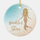 Aqua Gold Mermaid Sparkle Glitter Confetti Ceramic Ornament