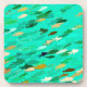 School of fish in an aquamarine green ocean - shades of green, aqua, gold and white
