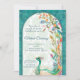 Aqua green teal Arabian floral peackock mehndi Invitation