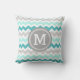 Aqua Grey Chevron Monogram Decorative Pillow