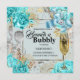 Aqua grey rose shabby chic bubbly glitter invitation
