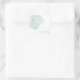 A wedding sticker featuring an illustration of an aqua green hibiscus flower. Personalize with the names of bride and groom. Look for matching wedding invitations and more at Jill's Paperie.