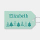 Add a personal touch to your gifts with our Aqua Holiday Trees Gift Tag. Featuring a serene aqua background on the front with a row of charming Christmas trees along the bottom, this tag can be customized with a name for a special touch. The back showcases the delightful tree pattern from our gift wrap set, making it a perfect match for your holiday presents. Ideal for adding a bit of festive cheer to any gift.