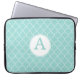 An elegant dusty aqua lace pattern decorates this stylish laptop sleeve. Personalize this laptop sleeve by changing the monogram letter to suit your needs. The design is from original art.