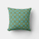 The Aqua Lattice Pop Pillow features a playful, retro-inspired pattern of blue diamond and ring shapes set against a muted olive-green background. The design has a crisp, graphic feel that nods to mid-century style with a fresh colour twist. Perfect for mod, eclectic, or coastal-themed interiors needing a pop of cool contrast.