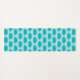 Personalized yoga mat done with a aqua and white polka dot pattern, on the front, with a single pretty aqua lotus silhouette, on one end. The back of the mat is done in light aqua blue with the same lotus design done in a pattern. Personalize the white text, on the front of the mat, for yourself or as a lovely gift idea.