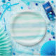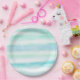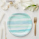 Aqua Mint Blue White Watercolor Stripes Paper Plate