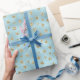 Aqua Mint Gold Glitter Stars Wrapping Paper