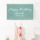 Create your own elegant aqua/mint birthday party banner with sparkling glitter and a white calligraphy/script text. Banner says, "Happy Birthday" and is customized with the name of the guest of honour. Text and fonts are completely customizable on this banner, as well as the background colour. So no matter what your party colour theme, your decor can be customized for it. Contact me for assistance with your customizations or to request matching products.