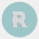 Aqua Mint Silver monogram letter R glitter Classic Round Sticker