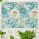 Aqua Mint White Floral Kitchen Towel