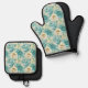 Aqua Mint White Floral Wedding Oven Mitt & Pot Holder Set