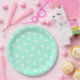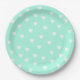 Aqua Mint with Cute White Hearts Pattern Paper Plate