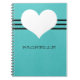 Sweet and charming Modern Heart Notebook featuring a turquoise background and a cute heart and striped border. This cute and girly notebook will allow you to keep notes and reminders handy with style. Customize with the text of your choosing. Click on "Customize" to find additional personalization options.