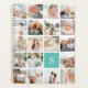 Customize this chic planner with 19 square photos arranged in a grid collage layout, with your single initial monogram on a vibrant turquoise aqua square at the lower right. Back cover has tone on tone stripes in matching teal.