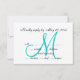 Aqua Monogram Zebra Print Wedding RSVP Card