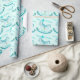 Aqua named rocking horse 4th birthday pattern wrap wrapping paper