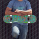 Aqua, Orange and Green Groovy Abstract Retro Art Skateboard
