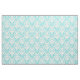 Chic and stylish Parisian Damask Fabric featuring an elegant flourish pattern in turquoise on a white background. Background colour may be changed to match any craft project. Click "Customize It" to find more personalization options.