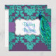 Aqua Peacock & Purple Damask Wedding Invitations - Square 5.25x5.25 Size
