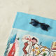 It's a fantastically colourful vintage postcard map of Puerto Rico repurposed on a beach towel!