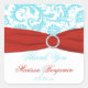 Aqua, Red, and White Damask Wedding Favour Sticker