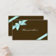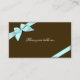 Light aqua ribbon on chocolate brown background. Fully customizable guest table place card to use for weddings, parties, bridal shower, engagement and any other special occasions.