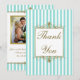 Cette carte de remerciement élégante et chic de style invitation rayée bleu aqua et blanc avec des accents dorés est sur du papier blanc basique et comporte un emplacement pour que vous puissiez ajouter votre propre photo de mariage numérique. Le texte et le choix du papier sont personnalisables. Il existe également un style de carte de vœux qui ne comporte pas de modèle de photo, si vous le préférez. Si vous avez besoin d'autres articles assortis, veuillez envoyer un e-mail à niteowlstudio@gmail.com avec votre demande.