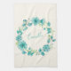Aqua Sea Green Floral Wreath Personalized Kitchen Towel
