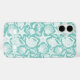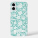 Customize this aqua shell pattern iPhone 16 plus case with your your name in a trendy modern CAP font in aqua on white. It's so modern and beachy!