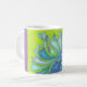 The Aqua Splash design on the face of the mug is a hand drawn interpretation of a splash in vivid blues and greens. By Ronni Brown from Creative Life Studio.