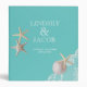Beach Themed recipe binder. Starfish and Sand dollars over an aqua background.