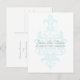 Modern with chic elegance describes this sophisticated Subtle Damask Save the Date Postcard with a light turquoise damask flourish background. This classic save the date is perfect for announcing a traditional wedding and can be easily customized with your wedding details. For more customization options, click on the Customize It button.