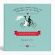 Vintage tandem bicycle 2-inch binder for the bride and groom to keep track of the wedding plans. Quote on front says "grow old along with me, the best is yet to be". Silhouette image of bride and groom riding a tandem bike with a red banner an aqua striped background. Matches our tandem bicycle wedding invitation set.