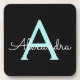 Black and Aqua Blue Teal Simple Script Monogram Name Paper Coasters. This makes the perfect graduation, birthday, wedding, bridal shower, anniversary, baby shower or bachelorette party gift for someone that loves glam luxury and chic styles.