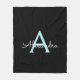 Aqua Teal Blue Script Girly Monogram Name Fleece Blanket