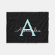 Aqua Teal Blue Script Girly Monogram Name Fleece Blanket