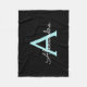 Black and Aqua Teal Blue Monogram Name Fleece Blanket. This makes the perfect sweet 16 birthday, wedding, bridal shower, anniversary, baby shower or bachelorette party gift for someone that loves glam luxury and chic styles.