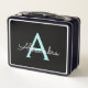 Aqua Teal Blue Script Girly Monogram Name Metal Lunch Box