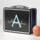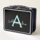 Black and Aqua Teal Blue Simple Script Monogram Name Lunch Box. This makes the perfect sweet 16 birthday or going back to school gift for someone that loves glam luxury and chic styles.