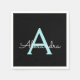 Black and Aqua Tal Blue Monogram Add Your own Name Paper Party Napkins. This makes the perfect sweet 16 birthday, wedding, bridal shower, anniversary, baby shower or bachelorette party gift for someone that loves glam luxury and chic script styles.
