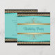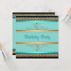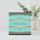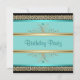 Aqua Teal Blue Womans Black Gold Birthday Party Invitation