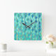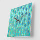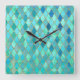 Aqua Teal Mint Gold Oriental Moroccan Tile pattern Square Wall Clock