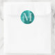 Aqua Teal Modern Signature Monogram Foil Classic Round Sticker