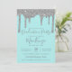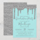 Aqua Teal Silver Glitter Drips Graduation Party Invitation