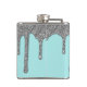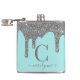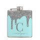 Aqua Teal Silver Sparkle Glitter Drips Monogram Hip Flask