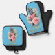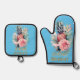 Aqua Tropical Gold Glitter Shine Pineapple Oven Mitt & Pot Holder Set