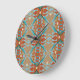 Aqua Turquoise Blue Orange Brown Tribal Pattern Large Clock