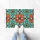 Aqua Turquoise Blue Orange Red Brown Tribe Art Doormat