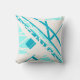Aqua Turquoise Diagonal Design on Off-white Motif Throw Pillow